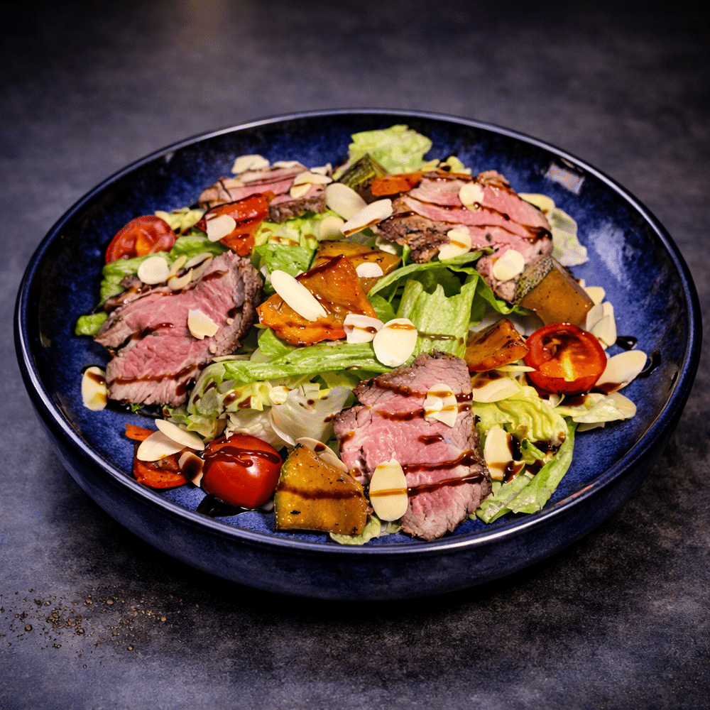 Ростбиф из вырезки говядины, айсберг, черри, перец болгарский