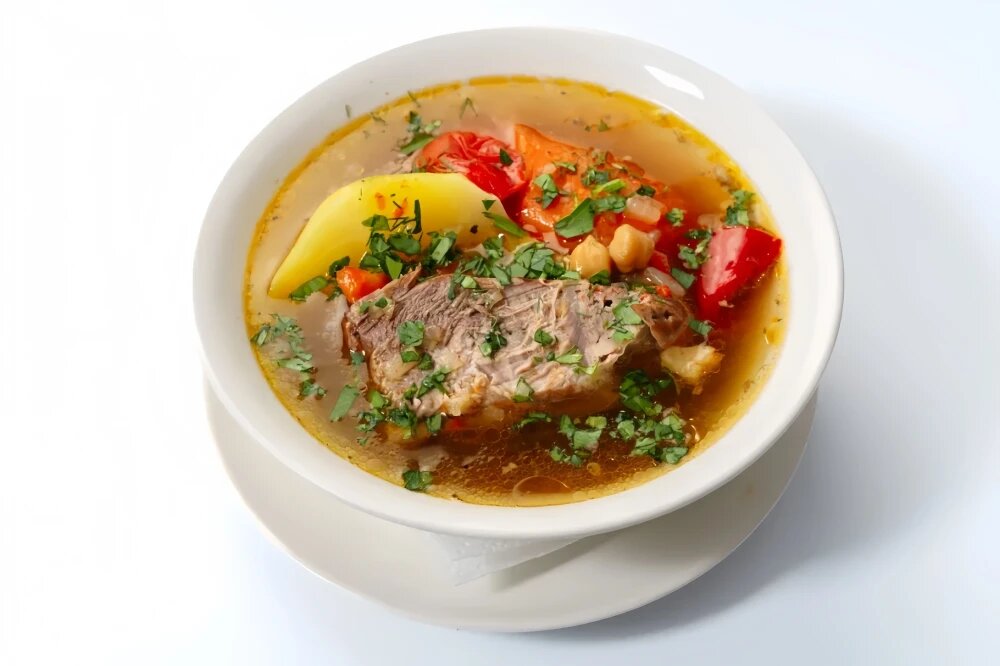Мясо говядина, картошка, морковка, болгарский перец, лук репчатый