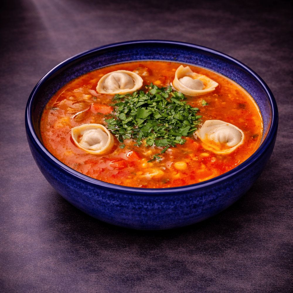 Мясо говядина, картофель, морковь, перец болгарский, лапша домашняя, сметана